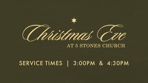 Christmas Eve at 5 Stones Church is sure to be a fun time and great tradition for the whole family! Each year you'll experience a unique event designed to honor the birth of our savior. Although each year is different, we always include a time of worship, a short message, and a very special candle lighting that you don't want to miss.